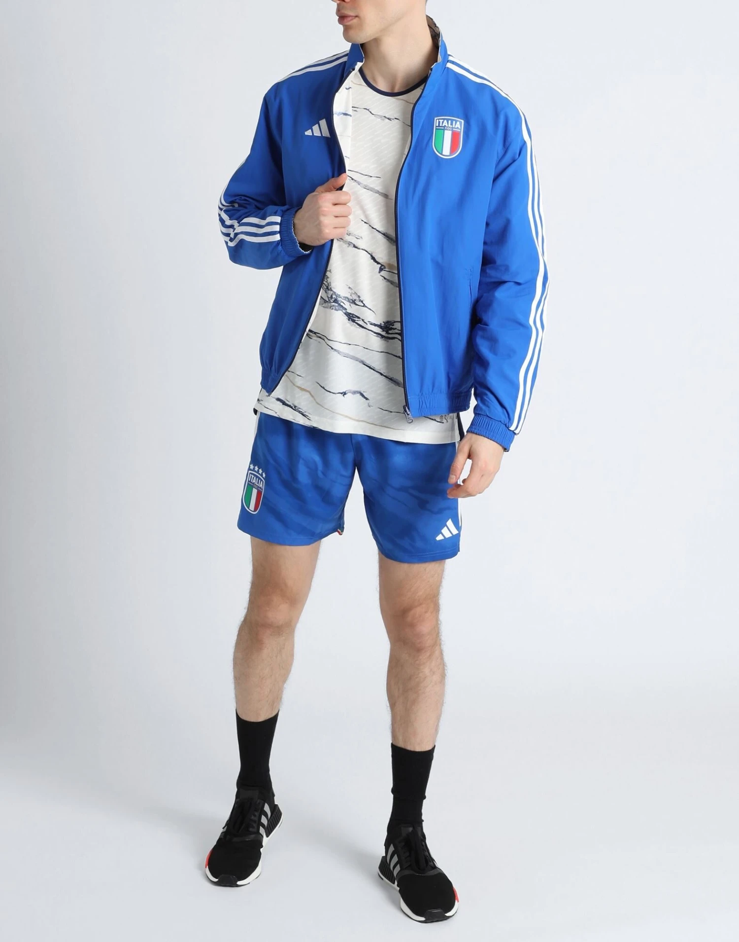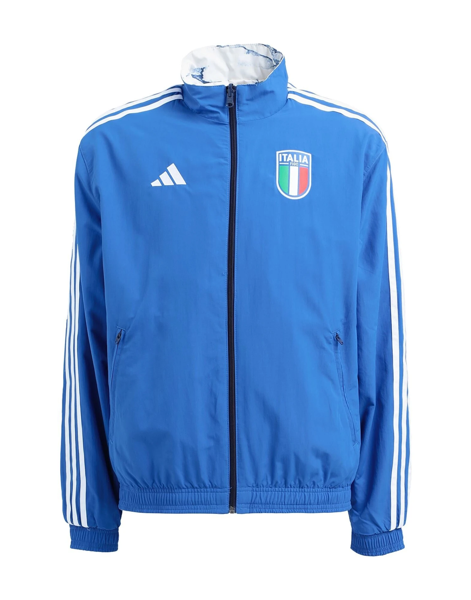 techno fabric, brand logo, side seam stripes, solid colour with appliqués, turtleneck, single-breasted , long sleeves, cuffs with elastic, fully lined, zipper closure, multipockets, double face, football, lifestyle, generic outerwear