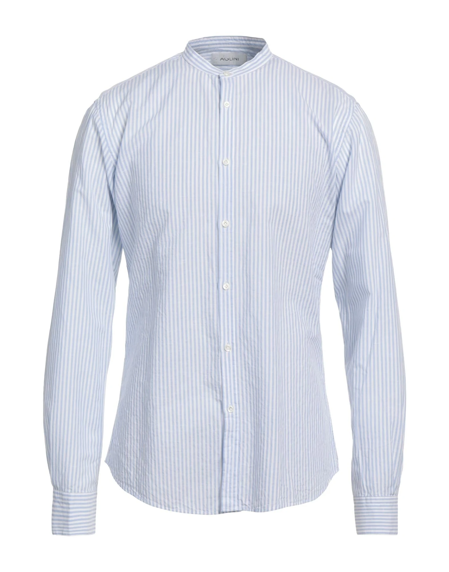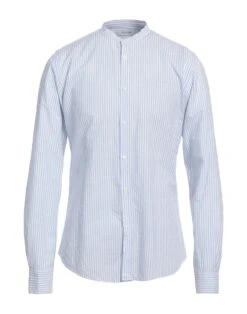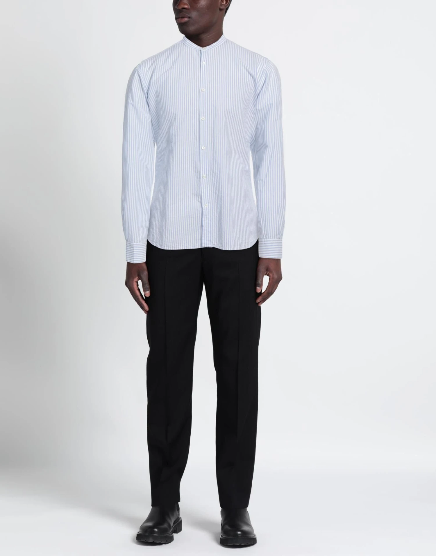 Plain weave, Long sleeves, Mandarin collar, Button closing, Stripes