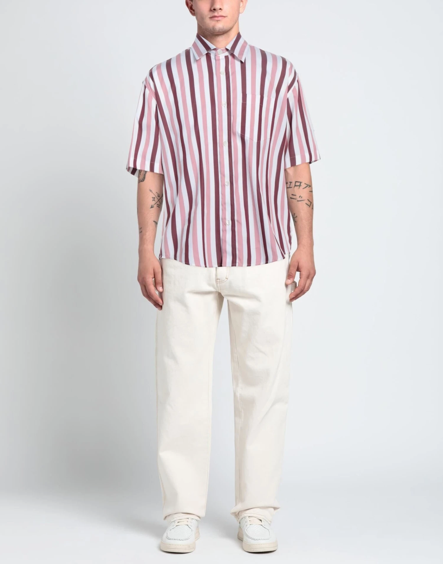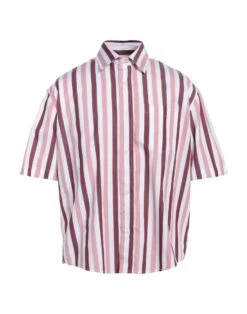 plain weave, brand logo, stripes, classic neckline, short sleeves, button closing, single chest pocket