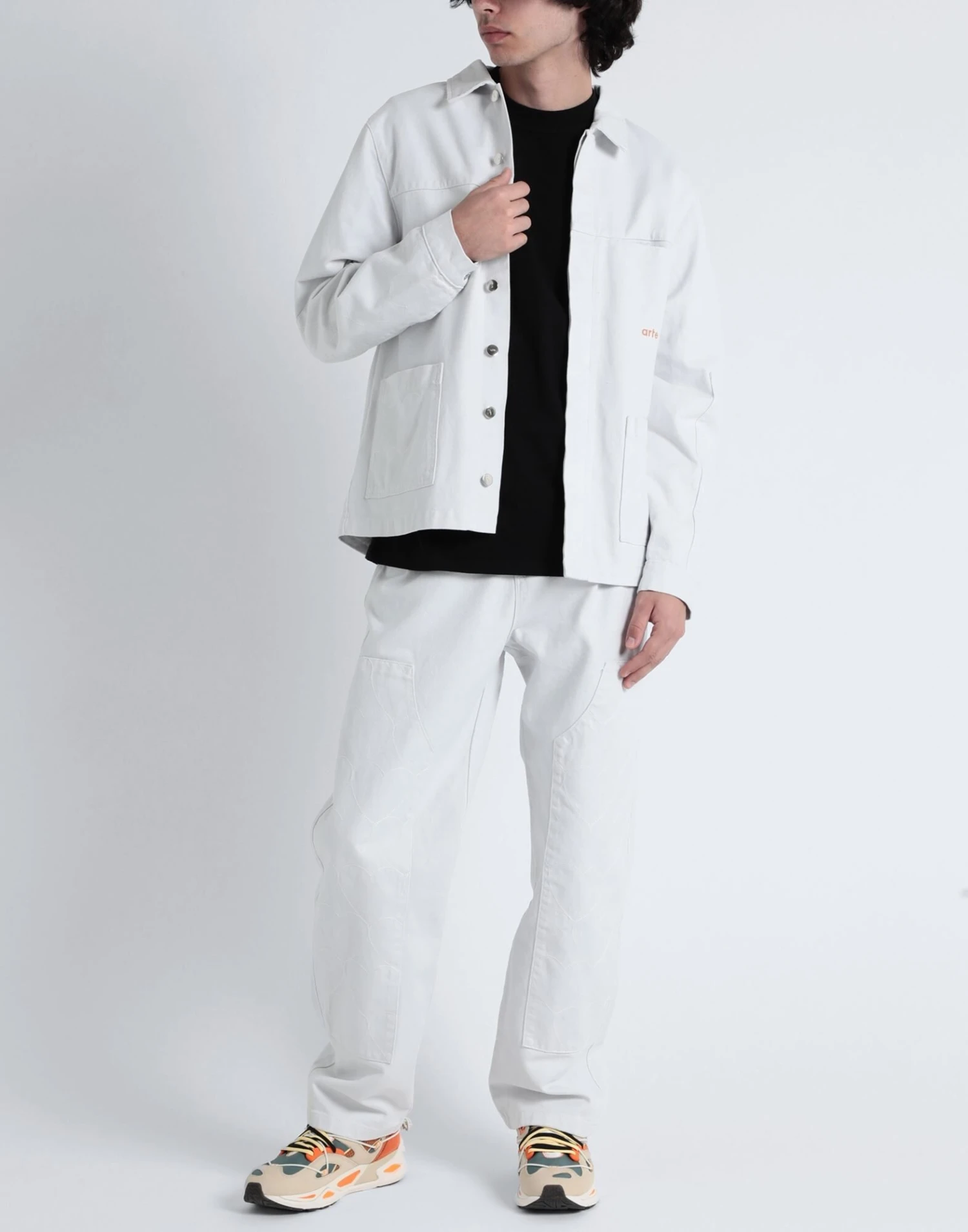 twill, brand logo, embroidered detailing, solid color, classic neckline, long sleeves, snap button cuffs, unlined, hidden buttons, multipockets, lifestyle, overshirt