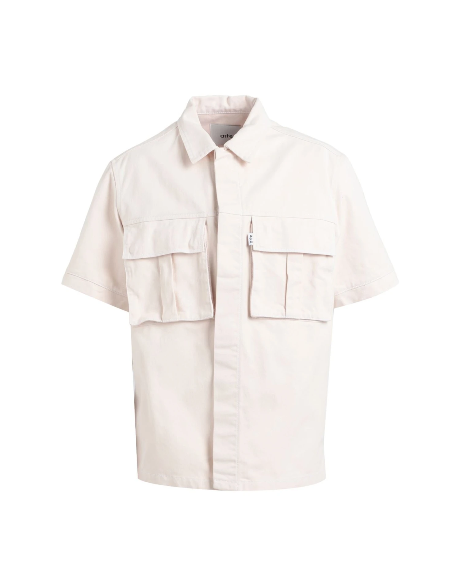 twill, brand logo, solid color, classic neckline, short sleeves, hidden buttons, multipockets, pocket with flap, lifestyle, overshirt