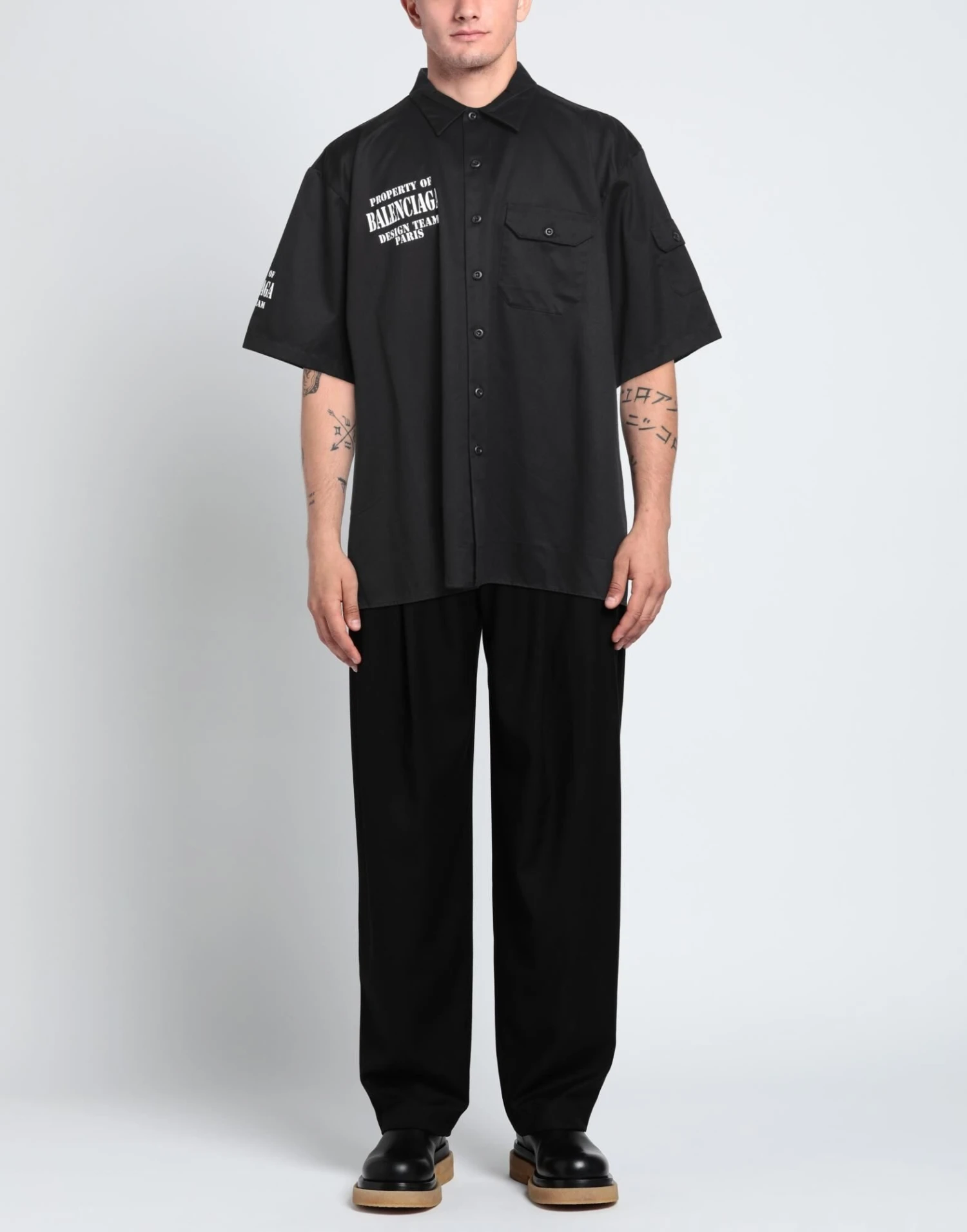 Gabardine, Short sleeves, Classic Neckline, Multipockets, Button closing, Solid color with print