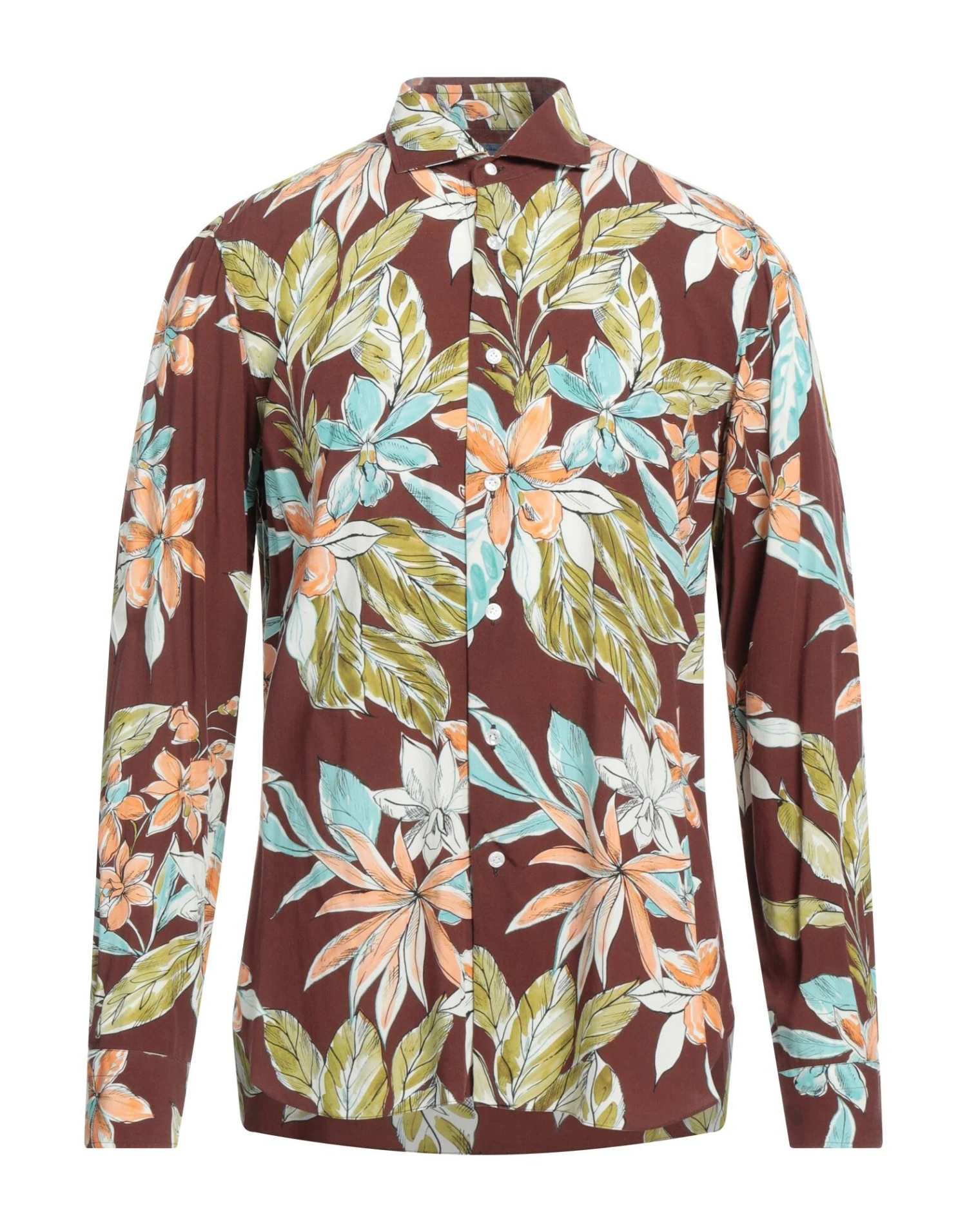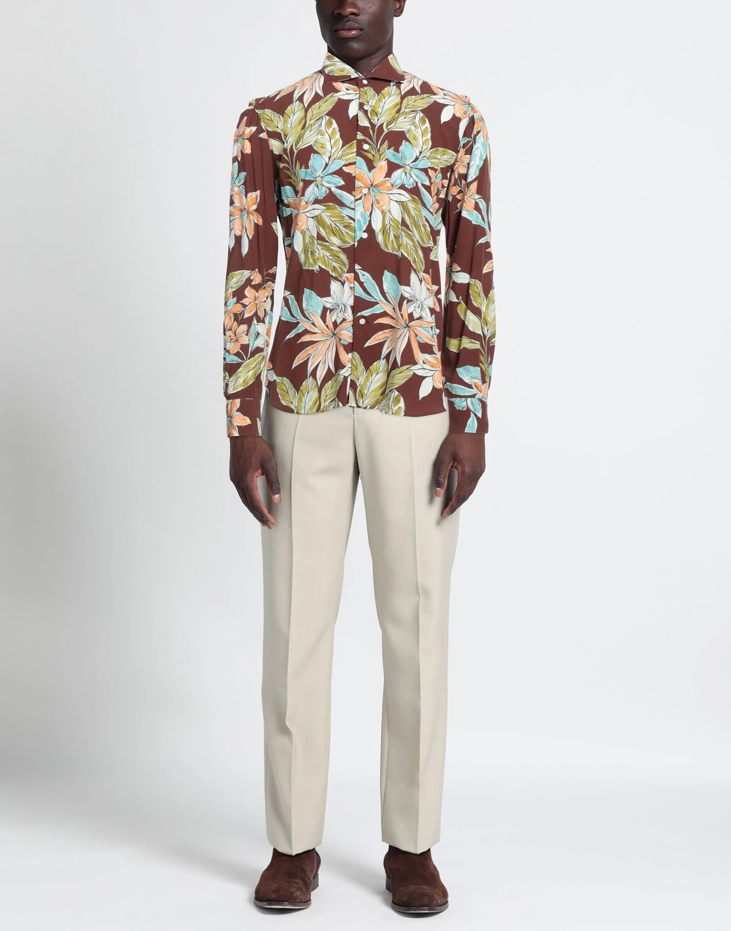 plain weave, brand logo, floral design, classic neckline, long sleeves, buttoned cuffs, button closing, no pockets