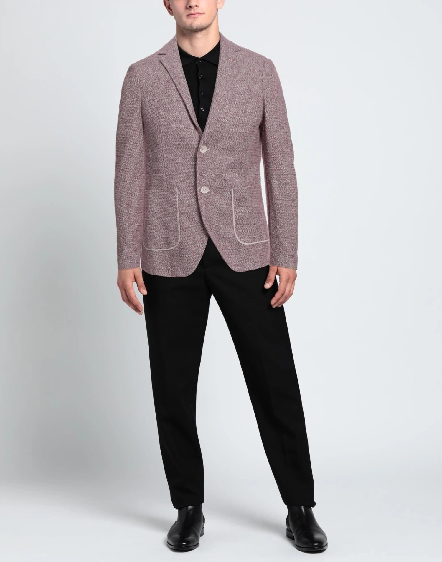 knitted, lightweight knit, no appliqués, two-tone, lapel collar, single-breasted , long sleeves, unlined, 2 buttons, multipockets, rear slit, single-breasted jacket