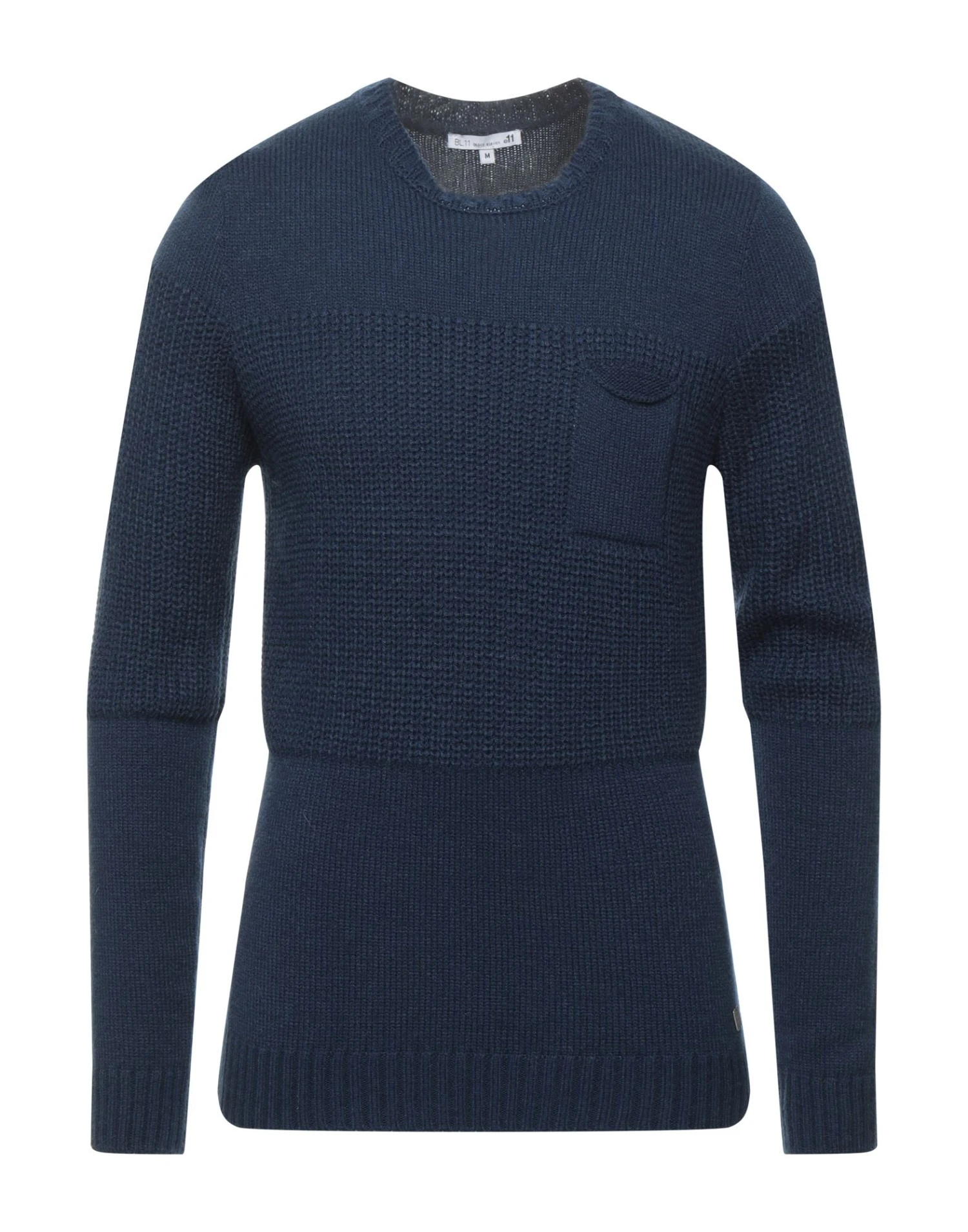 knitted, heavy-weight knit, brand logo, solid color, round collar, long sleeves, single pocket