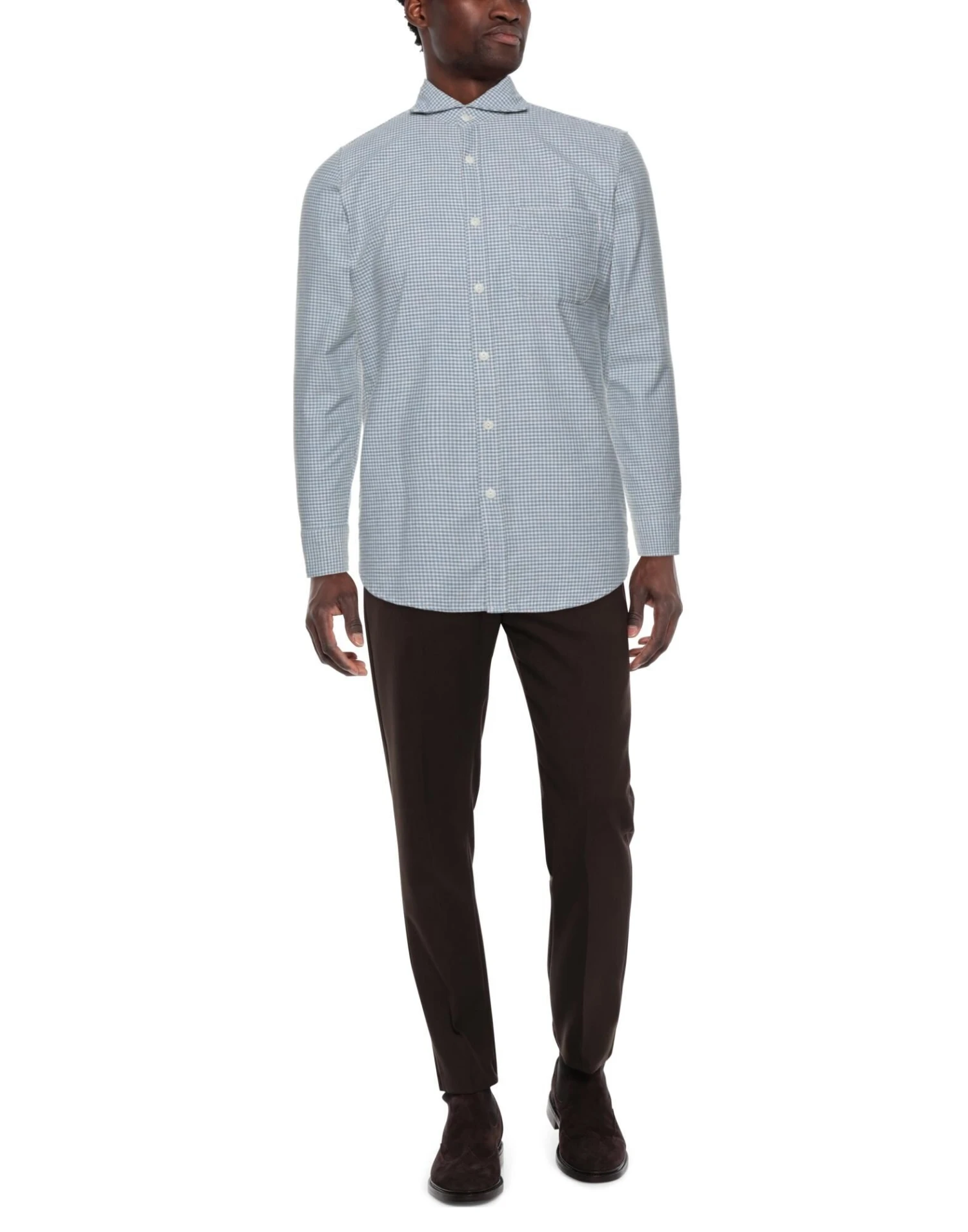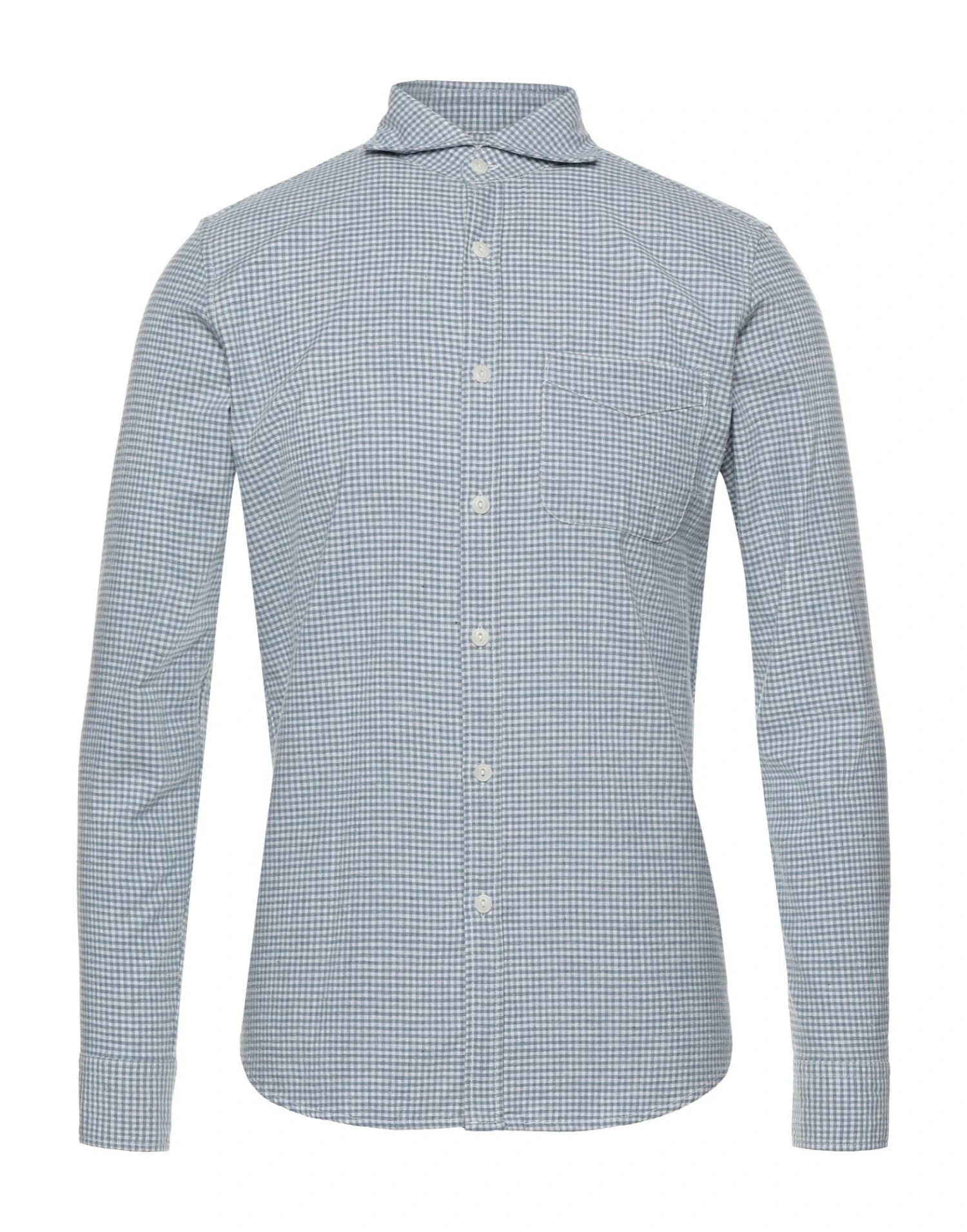 plain weave, no appliqués, checked, classic neckline, long sleeves, button closing, single chest pocket