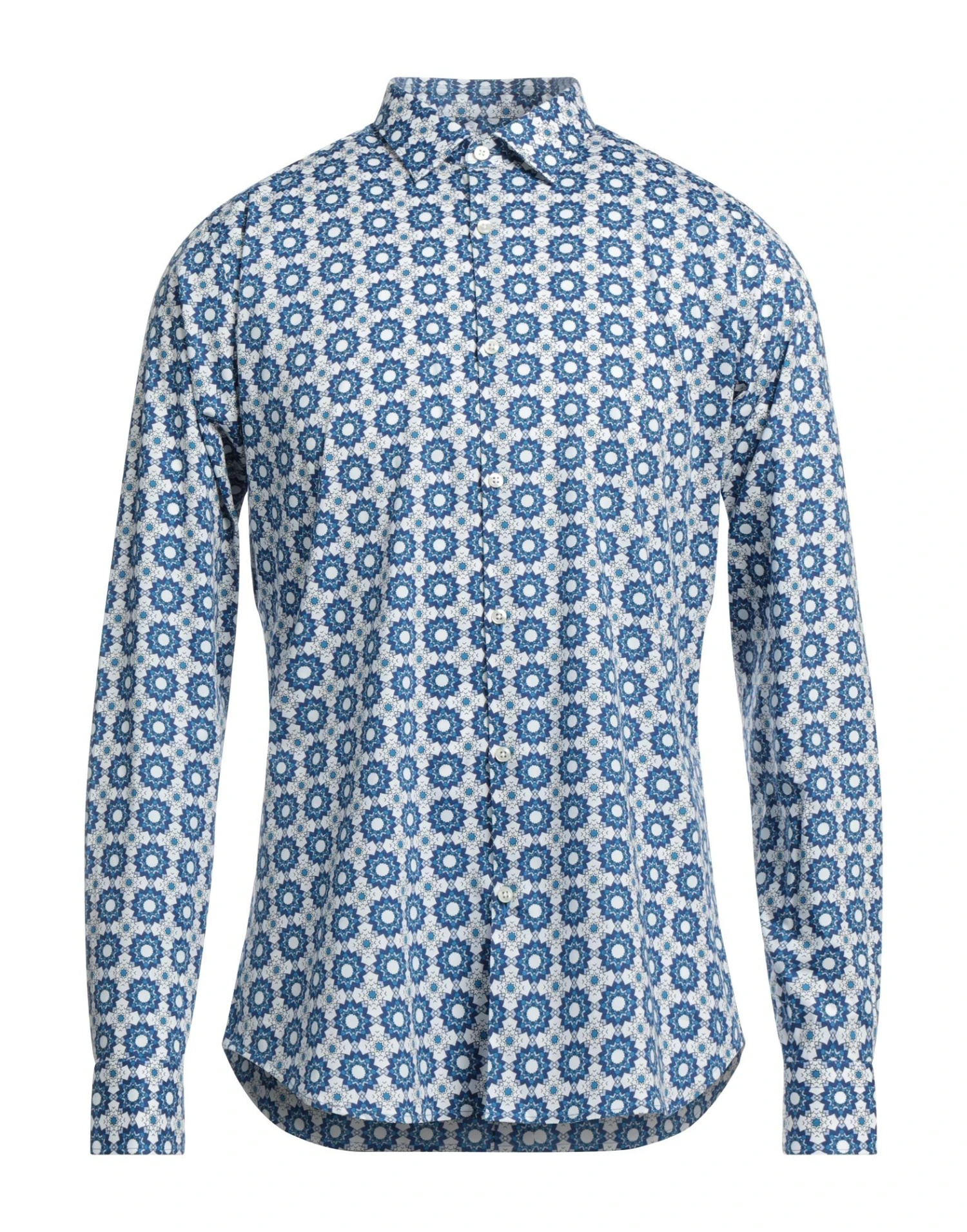 poplin, no appliqués, geometric design, classic neckline, long sleeves, buttoned cuffs, button closing, no pockets, stretch