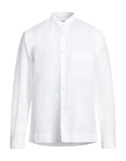 plain weave, no appliqués, solid color, mandarin collar, long sleeves, buttoned cuffs, button closing, single chest pocket, contains non-textile parts of animal origin