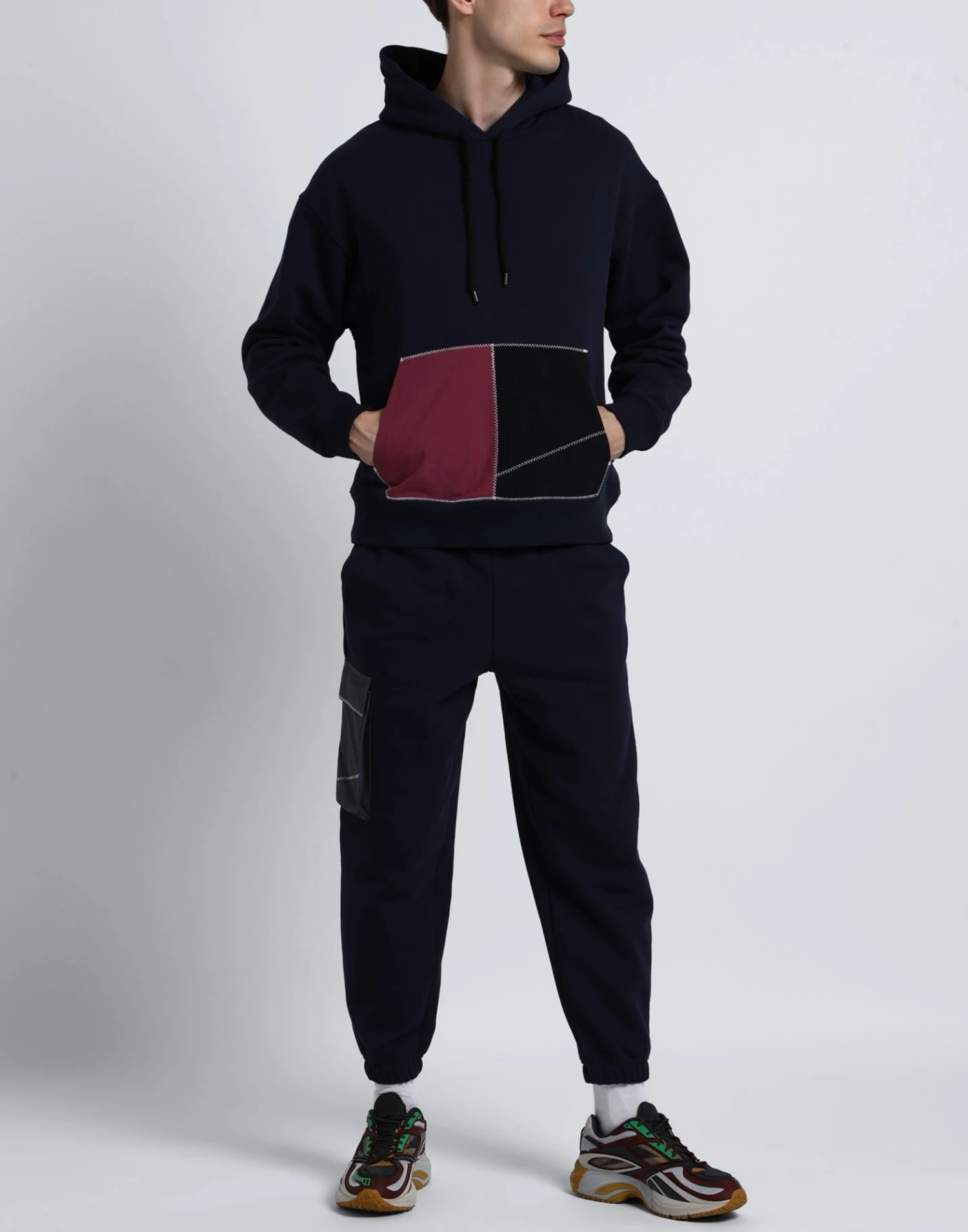 sweatshirt fleece, brand logo, solid colour with appliqués, hooded collar, long sleeves, ribbed cuffs, french terry lining, single pocket, lifestyle, this item contains certified recycled fibers.
