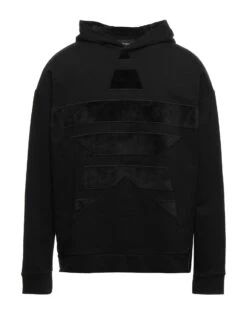 sweatshirt fleece, embroidered detailing, logo, solid colour with appliqués, hooded collar, long sleeves, multipockets, french terry lining