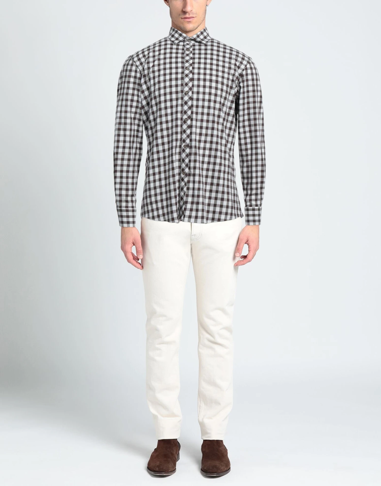plain weave, no appliqués, checked, two-tone, classic neckline, long sleeves, buttoned cuffs, button closing, no pockets