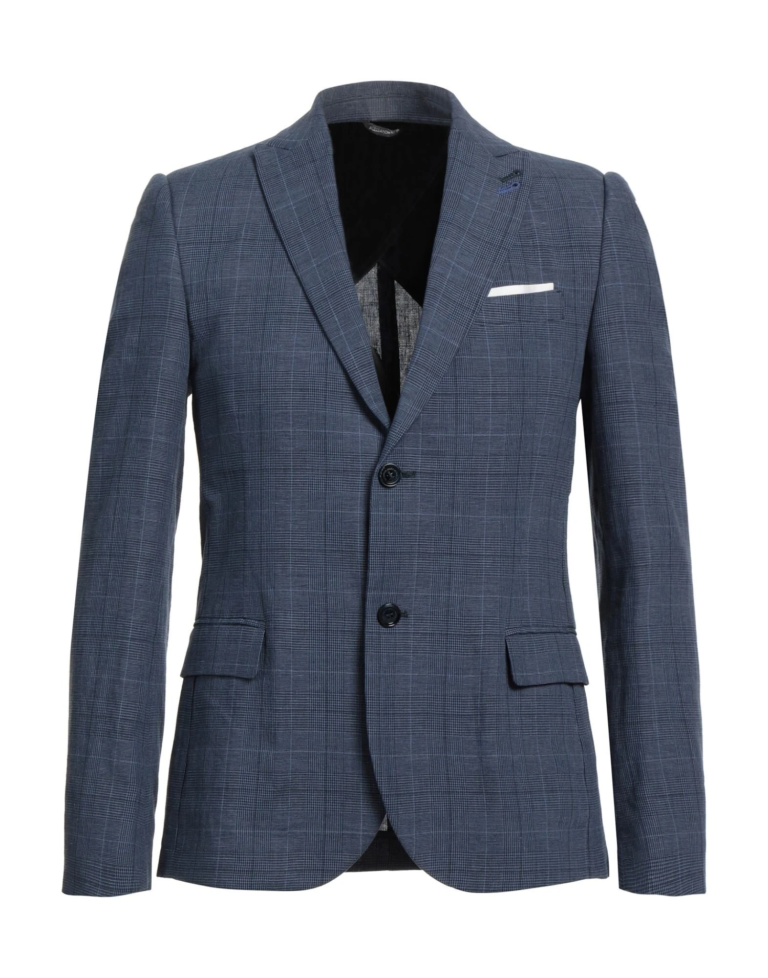 plain weave, no appliqués, glen plaid, lapel collar, single-breasted , long sleeves, partially lined interior, 2 buttons, multipockets, dual back vents, single-breasted jacket