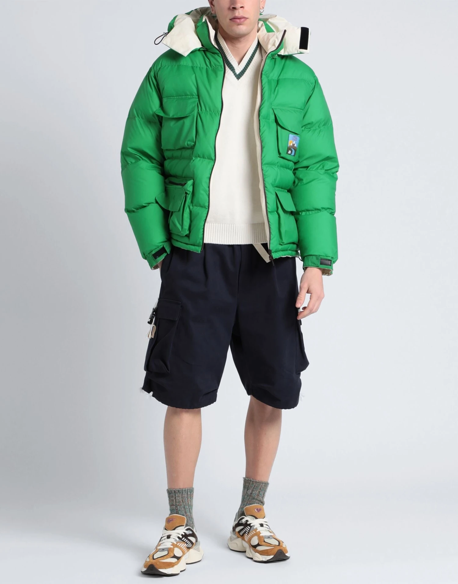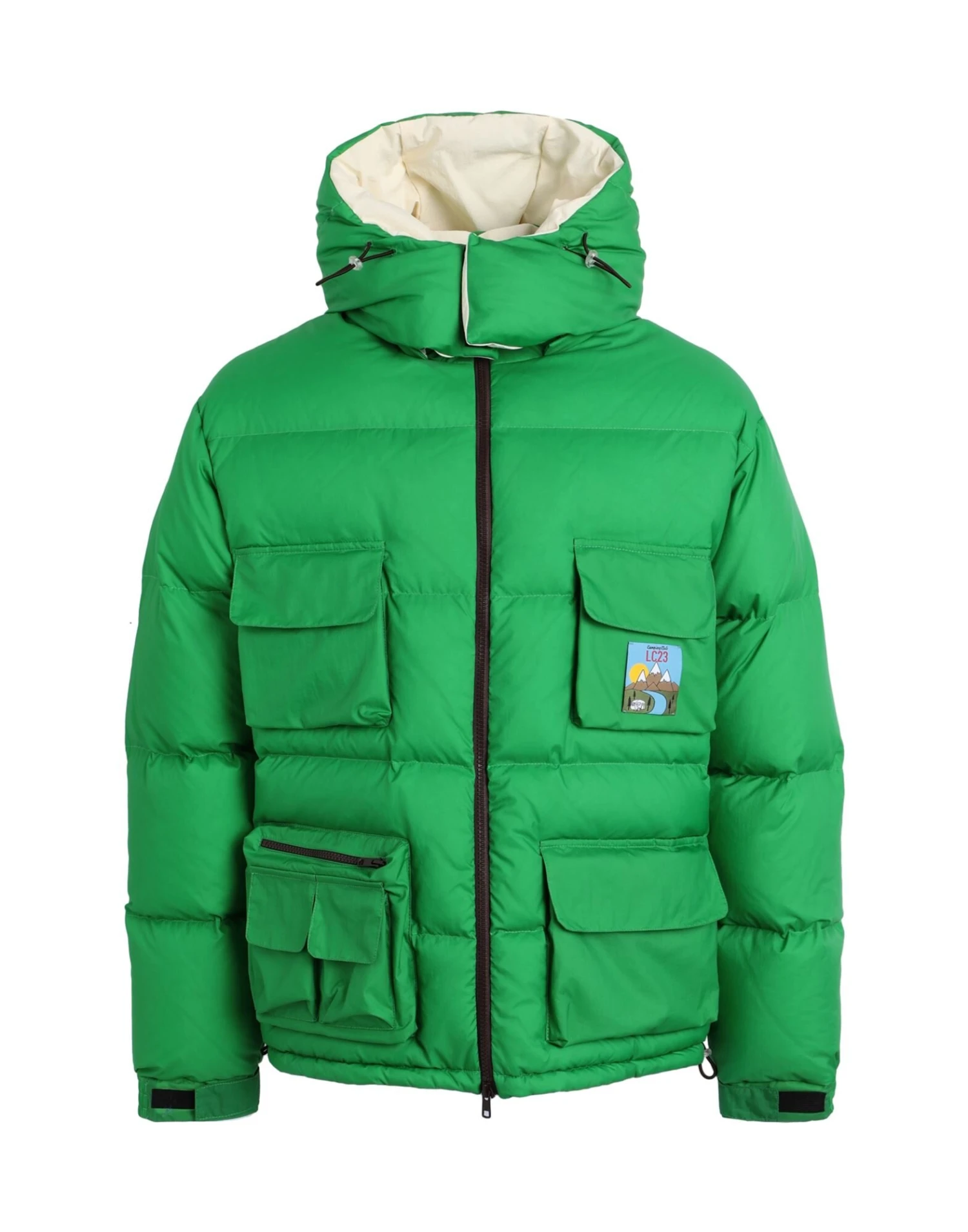 techno fabric, brand logo, solid color, neckline with removable hood, single-breasted , long sleeves, elasticated cuffs, internal padding, zipper closure, multipockets, drawstring hem, lifestyle, single-breasted jacket