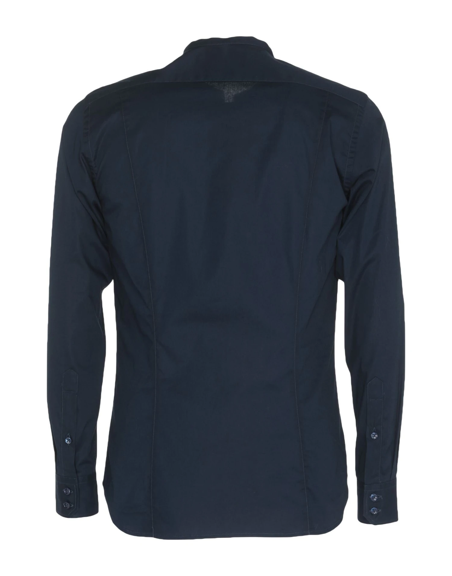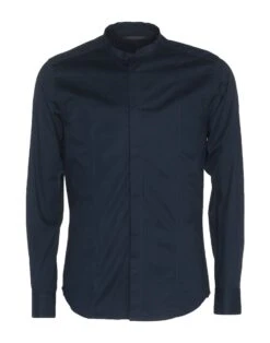 plain weave, no appliqués, basic solid color, front closure, button closing, long sleeves, mandarin collar, no pockets, stretch