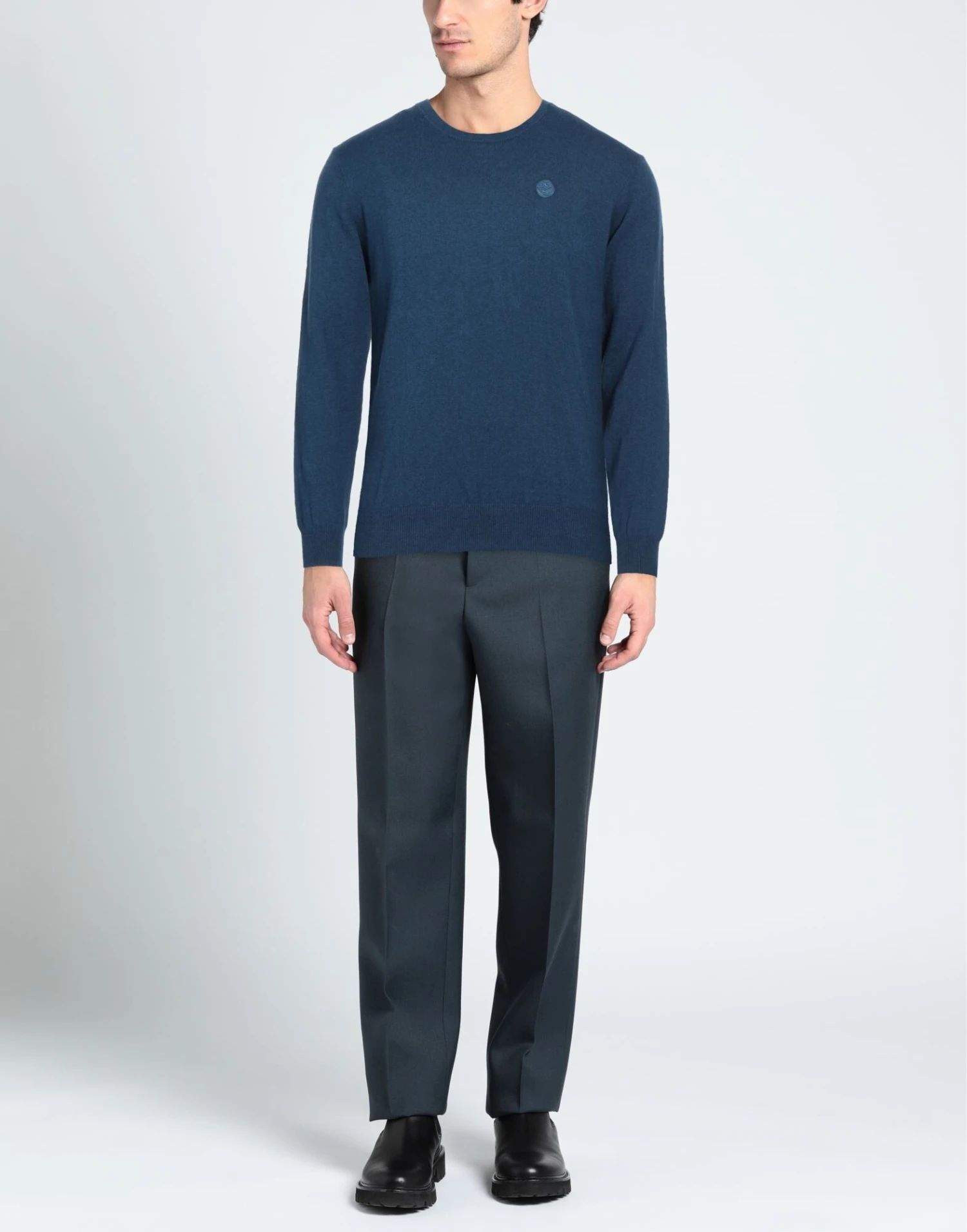 knitted, mélange, lightweight knit, brand logo, solid color, round collar, long sleeves, no pockets