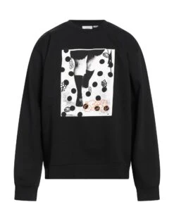 sweatshirt fleece, brand logo, solid color with print, round collar, long sleeves, fleece lining