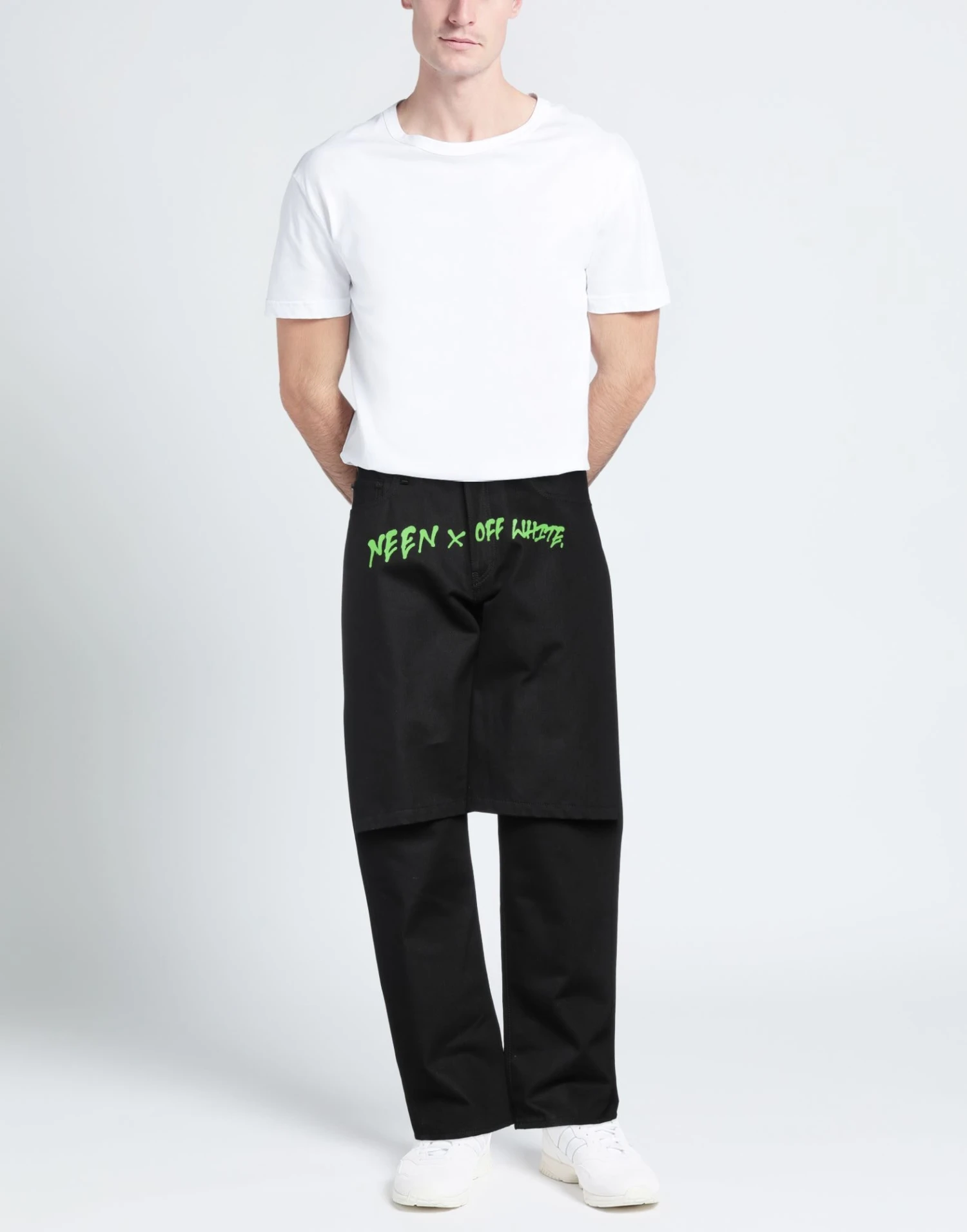 denim, brand logo, print, solid color, colored wash, high waisted, tapered leg, comfort fit, zipper closure, button closing, multipockets, straight-leg model