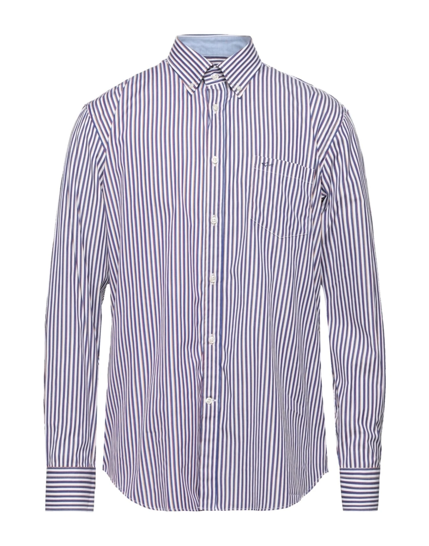 plain weave, brand logo, stripes, button-down collar, long sleeves, unlined, button closing, single pocket