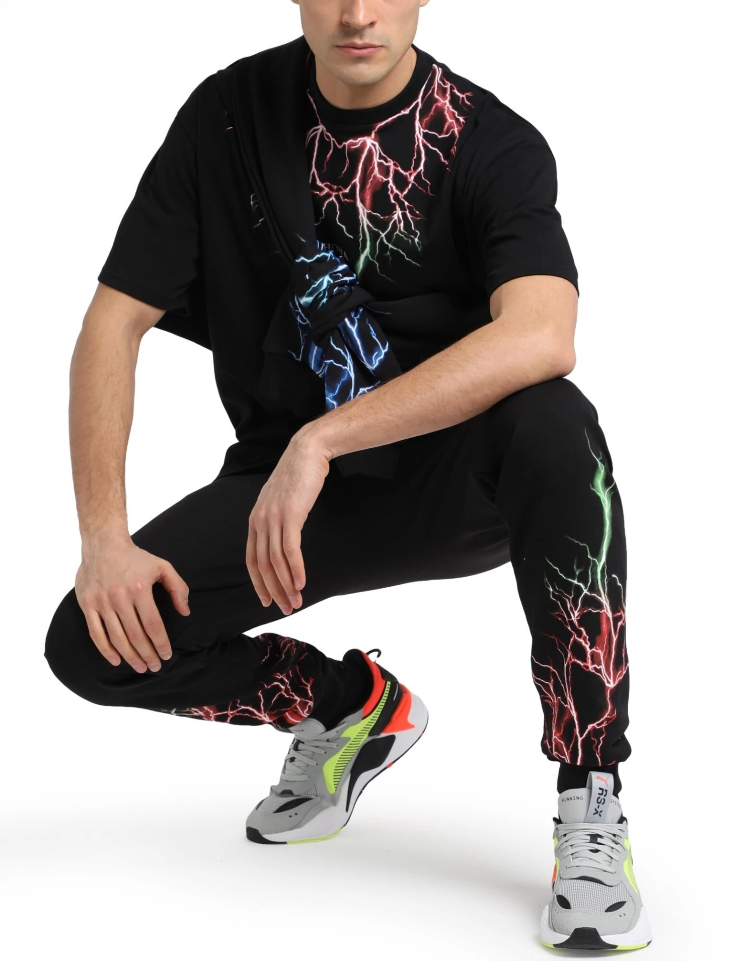 sweatshirt fleece, brand logo, solid color with print, high waisted, tapered leg, comfort fit, drawstring closure, french terry lining, lifestyle, multipockets