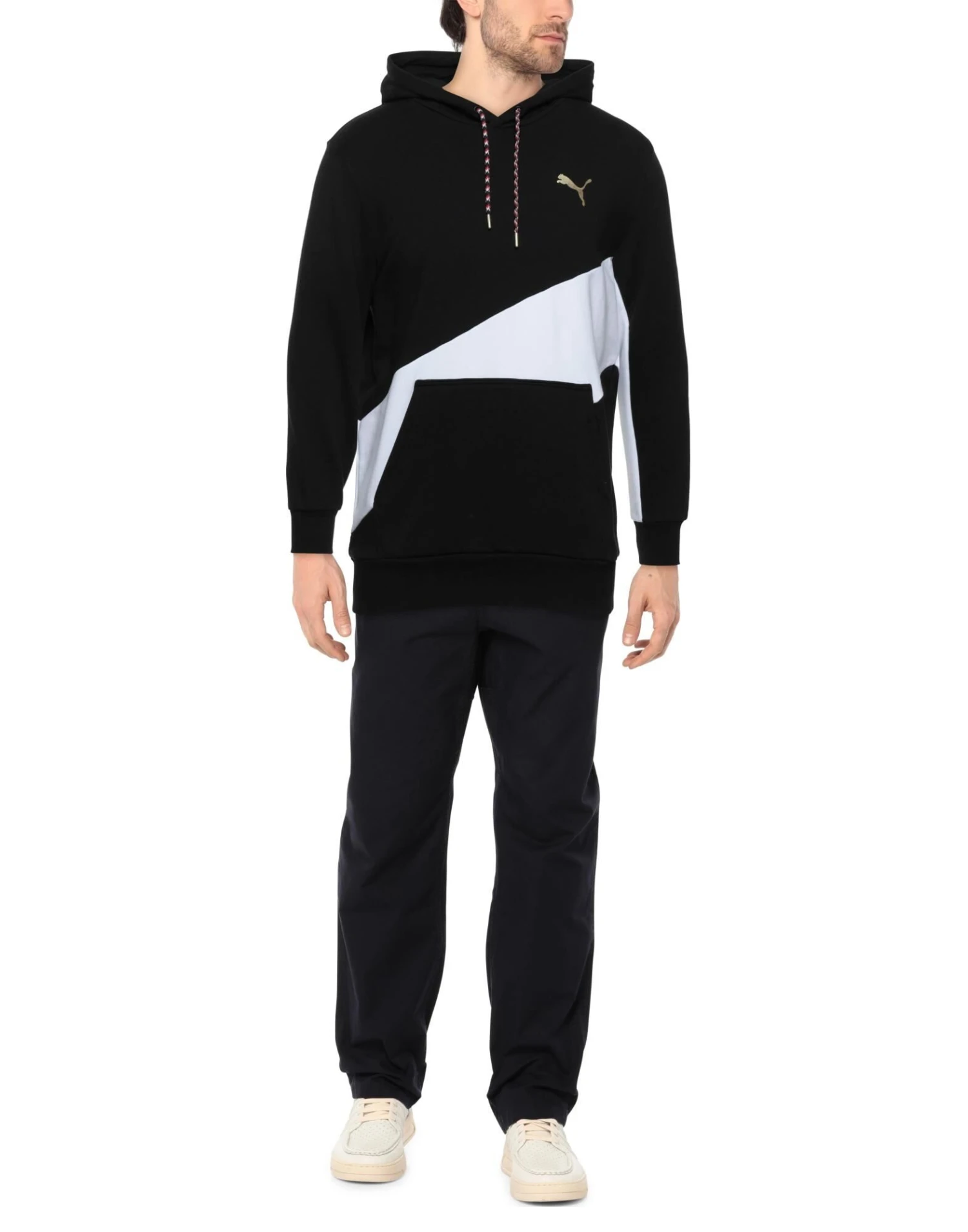 sweatshirt fleece, brand logo, two-tone, hooded collar, long sleeves, french terry lining, single pocket