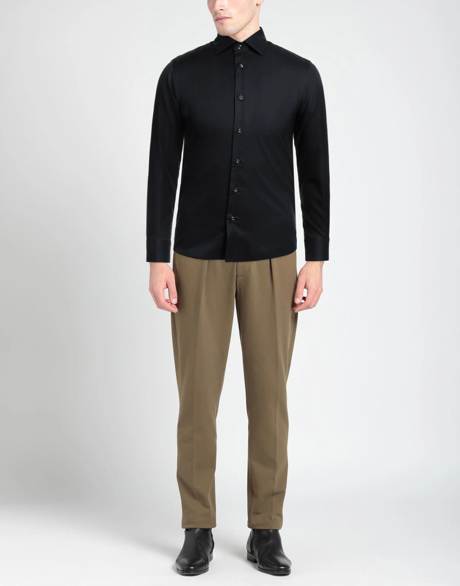 plain weave, no appliqués, solid color, classic neckline, long sleeves, buttoned cuffs, button closing, no pockets