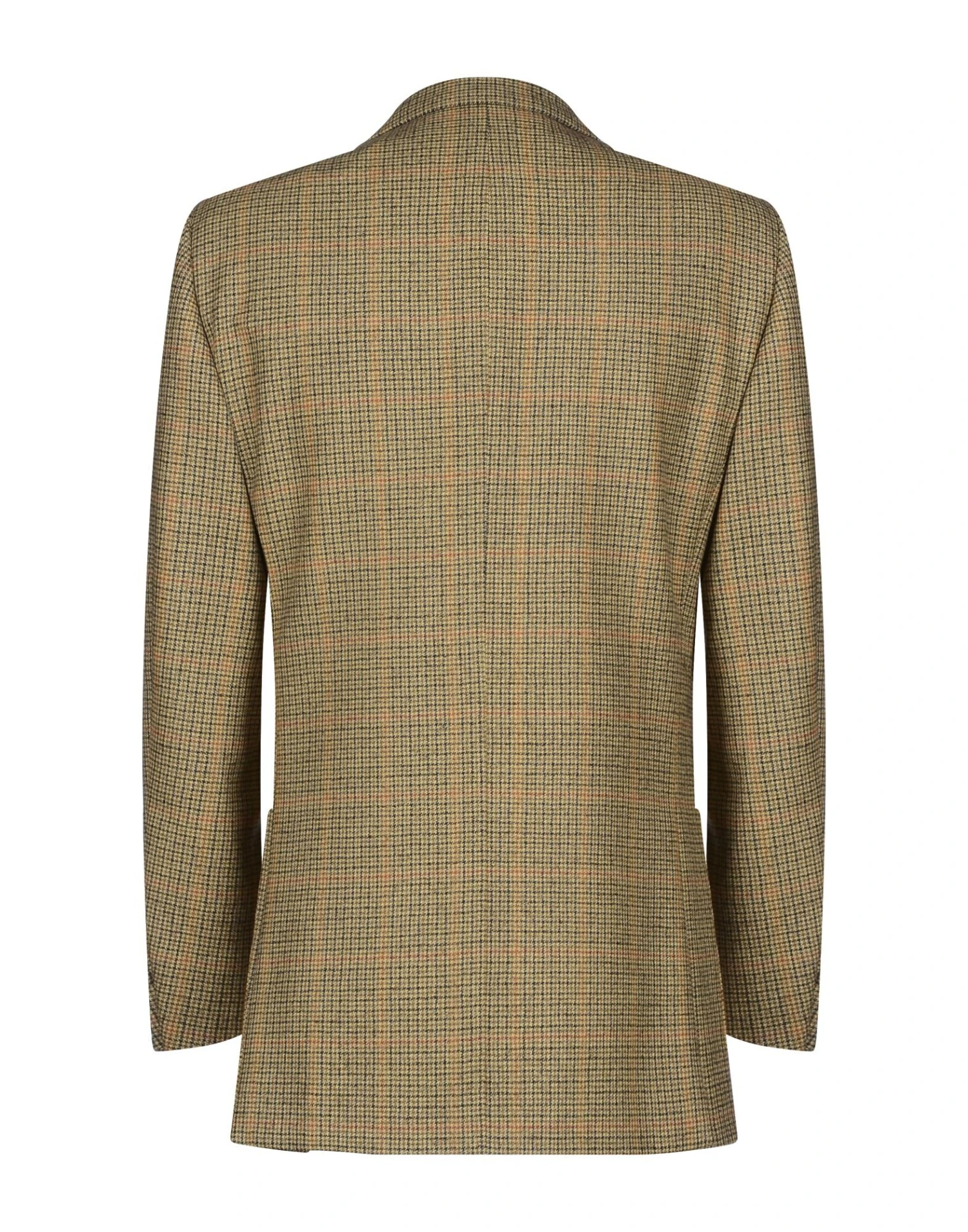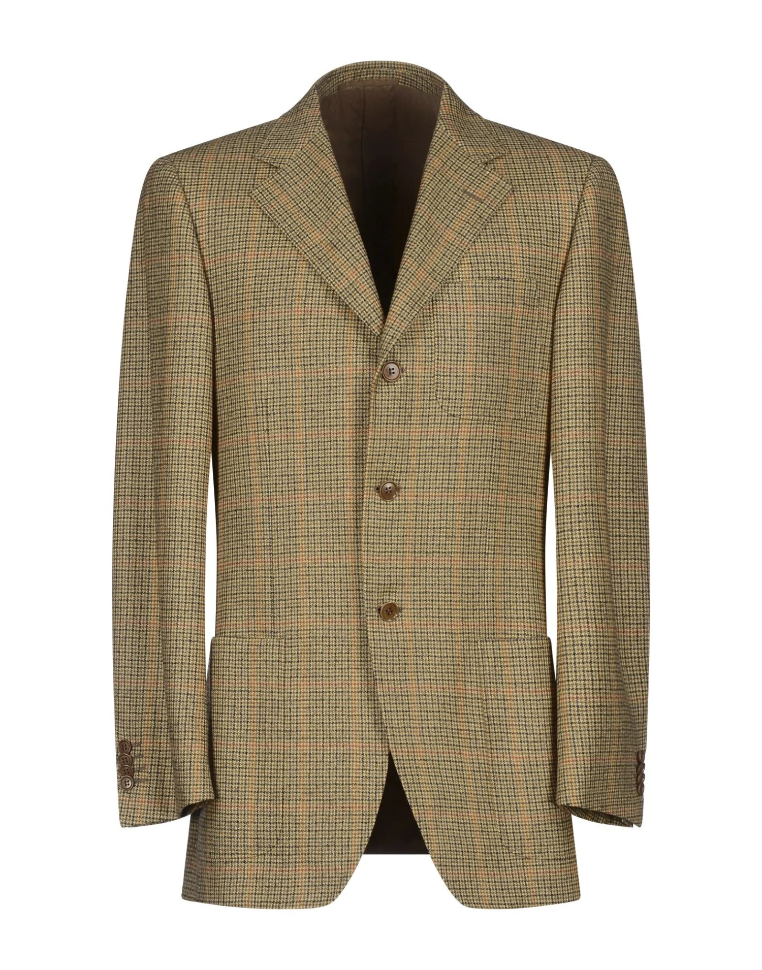 flannel, no appliqués, houndstooth, lapel collar, single-breasted , 3 buttons, single chest pocket, multipockets, long sleeves, lined interior, four internal pockets, dual back vents