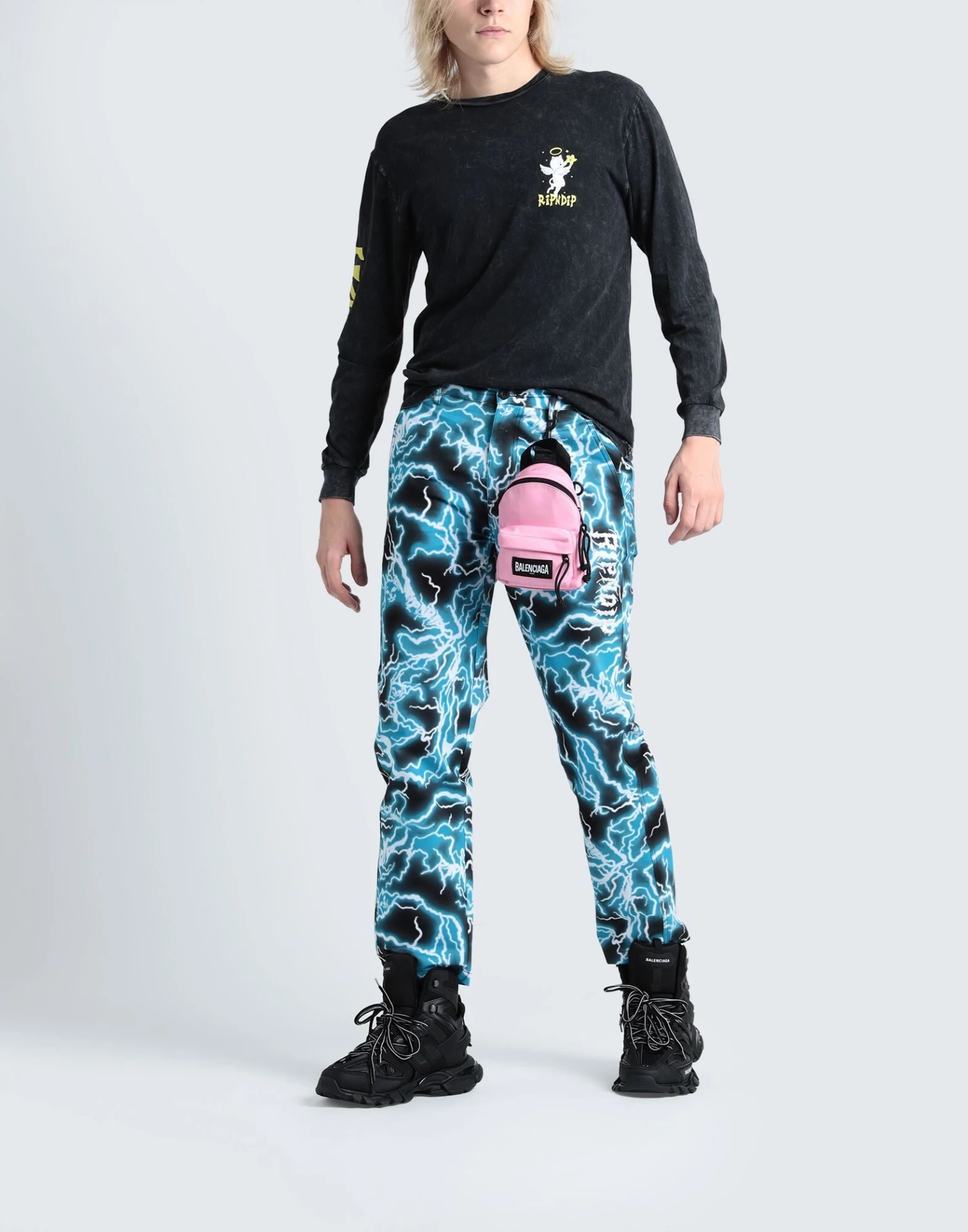 plain weave, embroidered detailing, brand logo, multicolor pattern, high waisted, regular fit, 1 button, zipper closure, multipockets, lifestyle, tapered leg