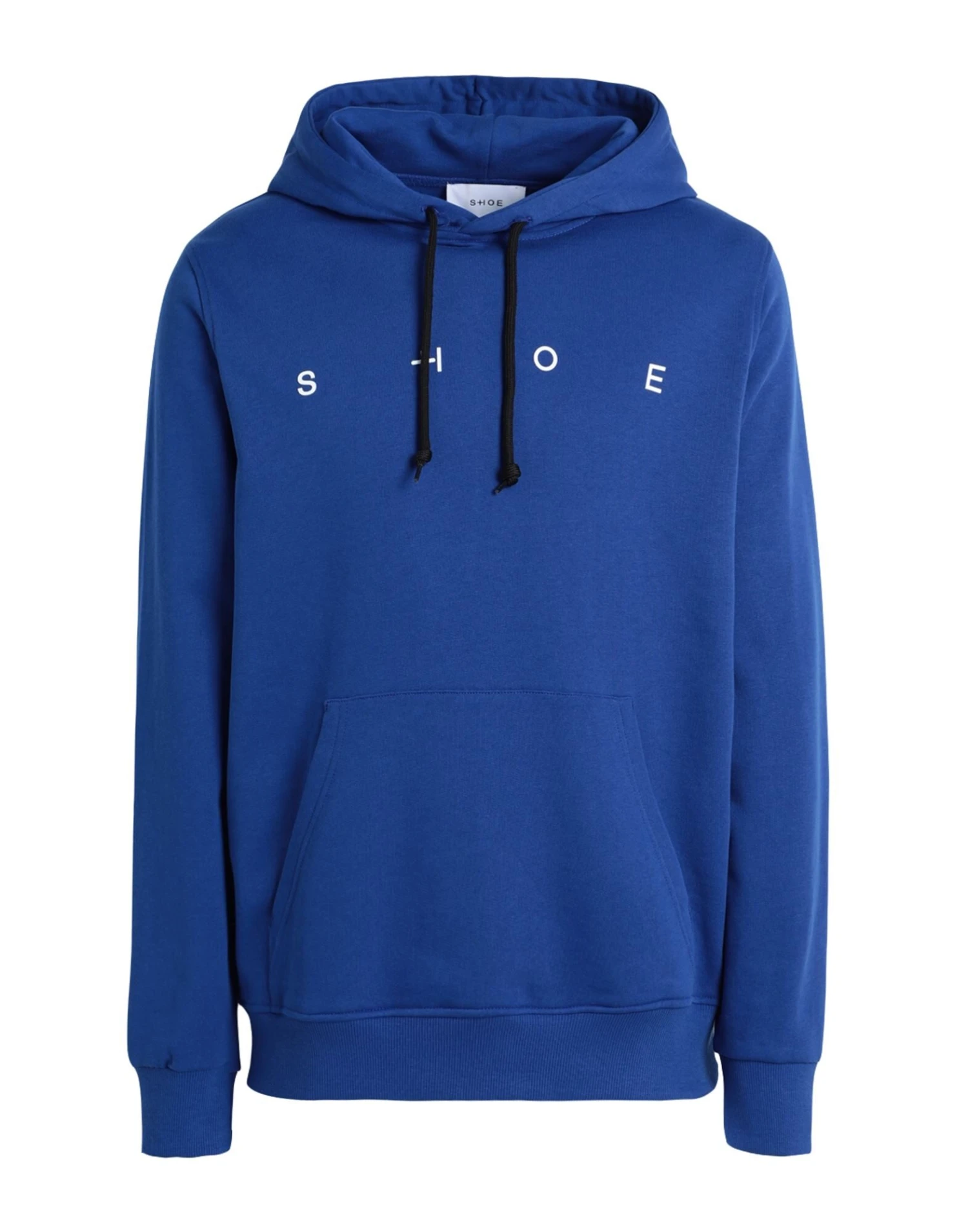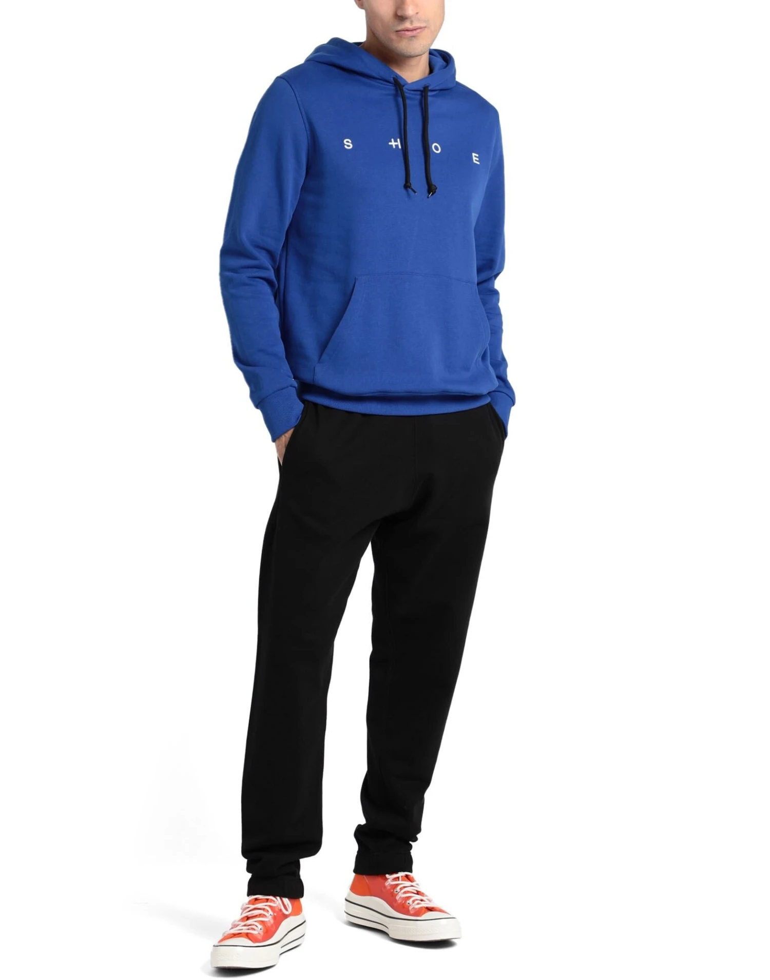 sweatshirt fleece, brand logo, solid color with print, hooded collar, long sleeves, ribbed cuffs, fleece lining, single pocket