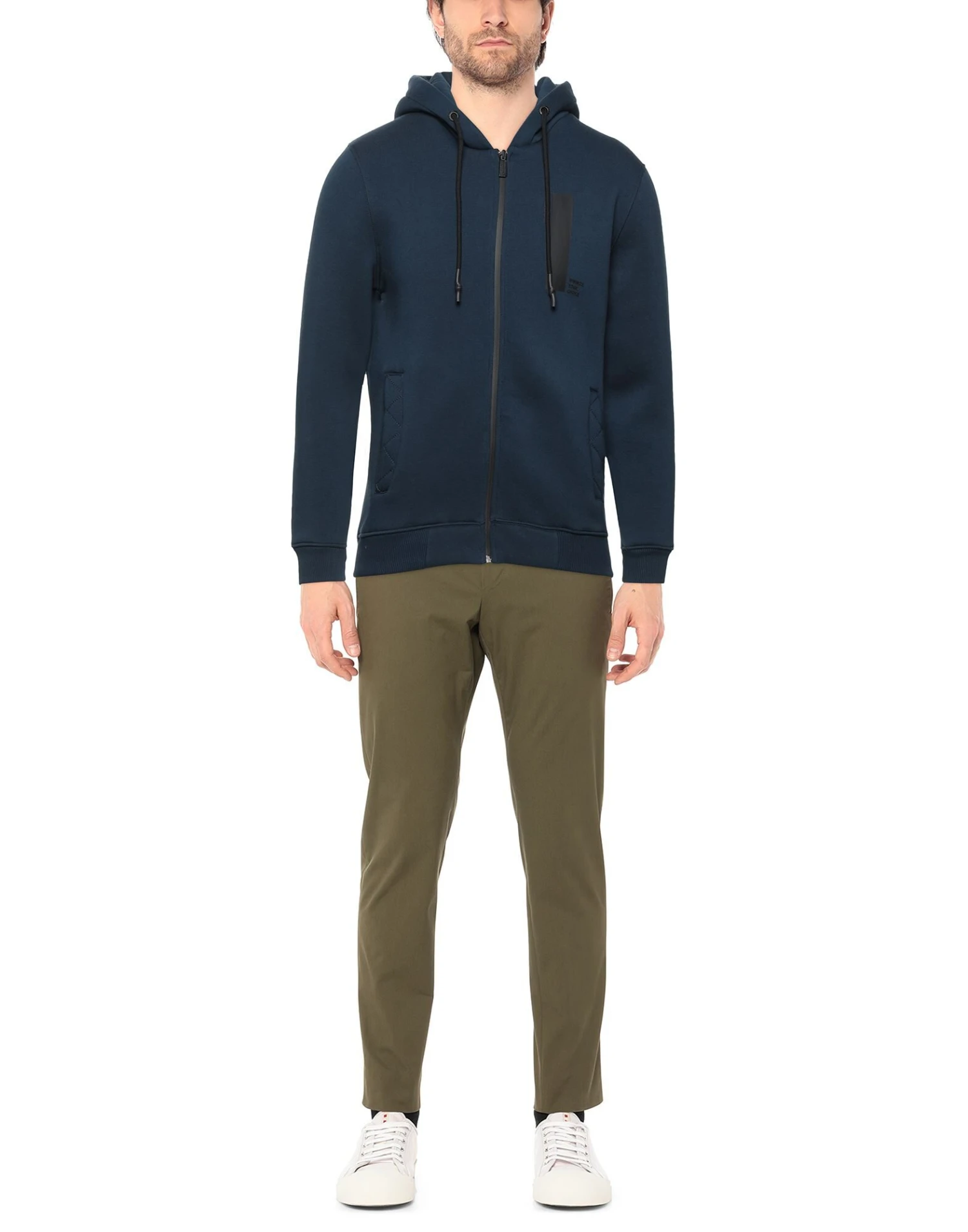 sweatshirt fleece, brand logo, solid color with print, hooded collar, long sleeves, fleece lining, zipper closure, multipockets, small sized