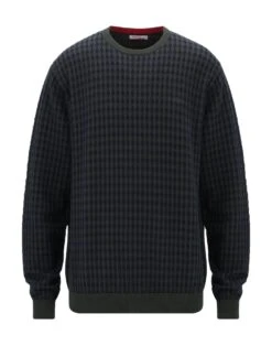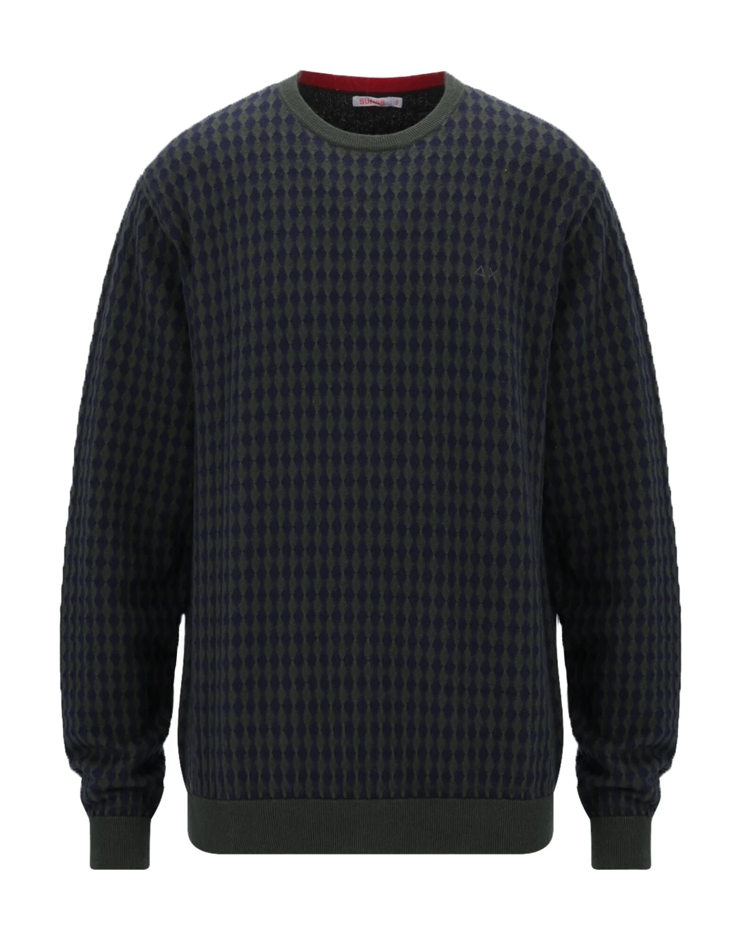knitted, mélange, logo, medium-weight knit, round collar, geometric design, long sleeves, no pockets