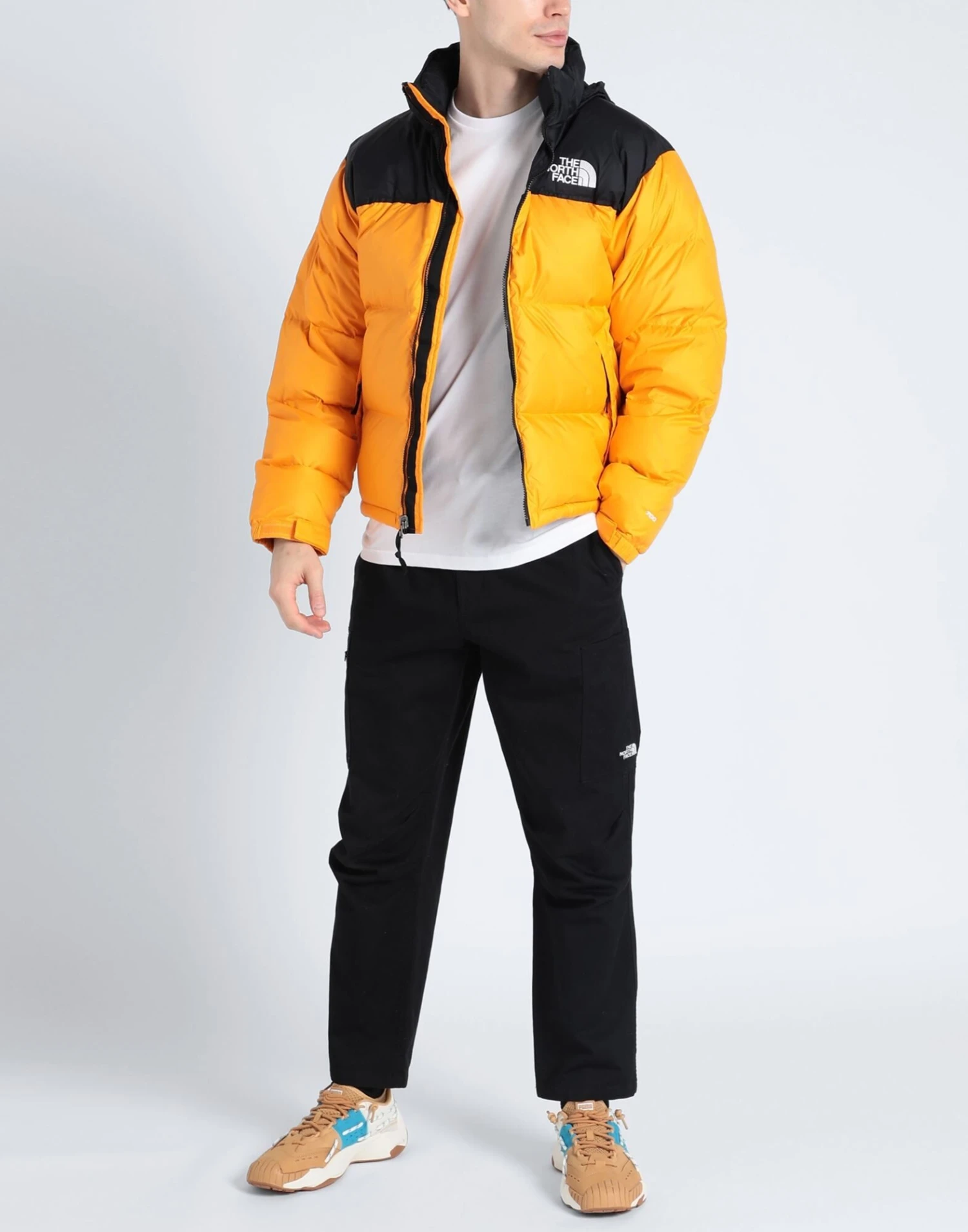techno fabric, brand logo, two-tone, hooded collar, single-breasted , long sleeves, cuffs with elastic, goose down interior, zipper closure, multipockets, drawstring hem, lifestyle, contains non-textile parts of animal origin, this item contains down or feather sourced from farms where animal welfare is valued., single-breasted jacket
