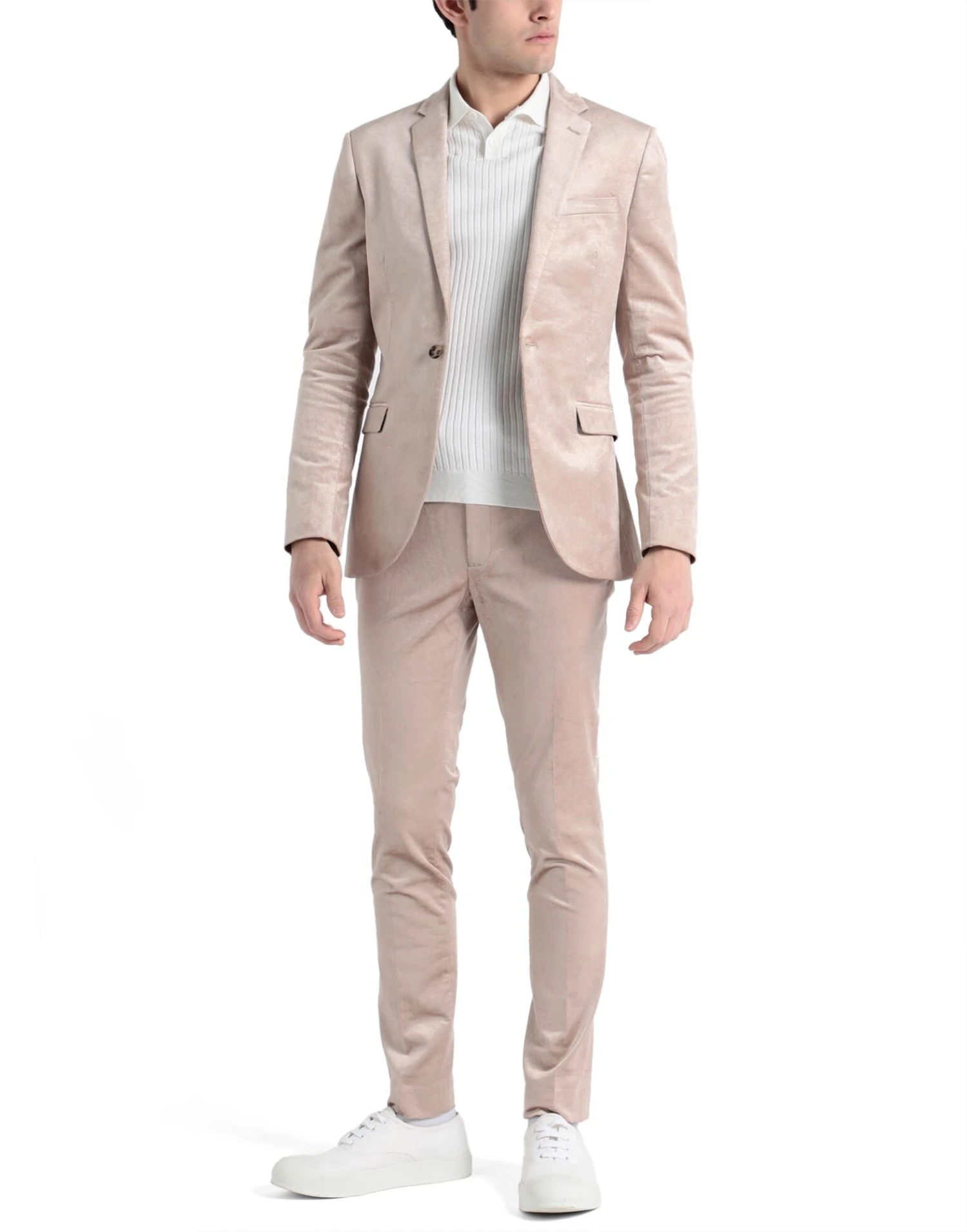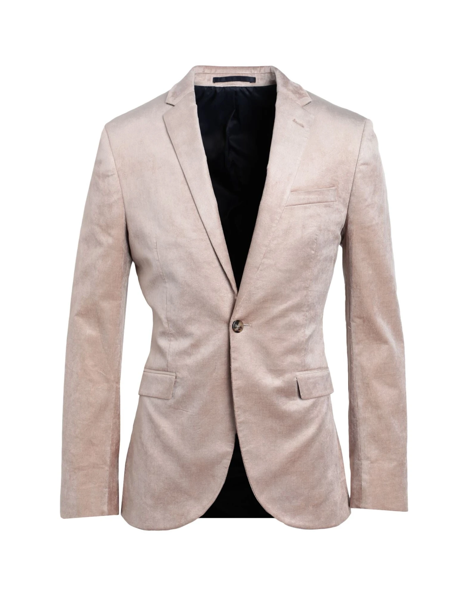 velvet, no appliqués, solid color, lapel collar, single-breasted , long sleeves, buttoned cuffs, fully lined, with shoulder pad, 1 button, multipockets, rear slit, stretch