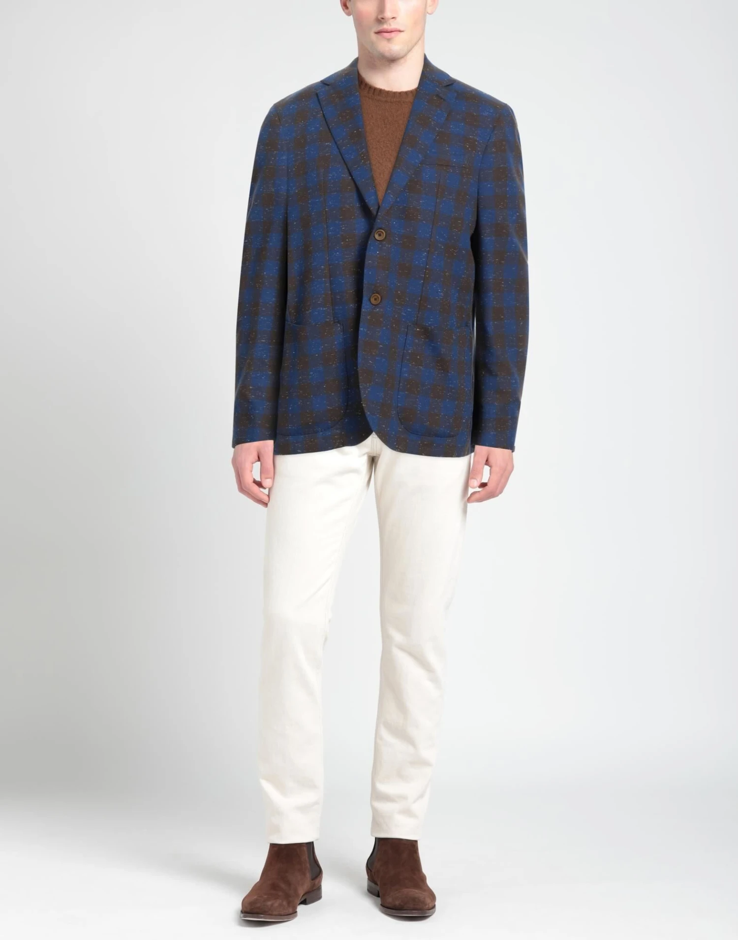 plain weave, no appliqués, checked, lapel collar, single-breasted , long sleeves, unlined, button closing, multipockets, single-breasted jacket