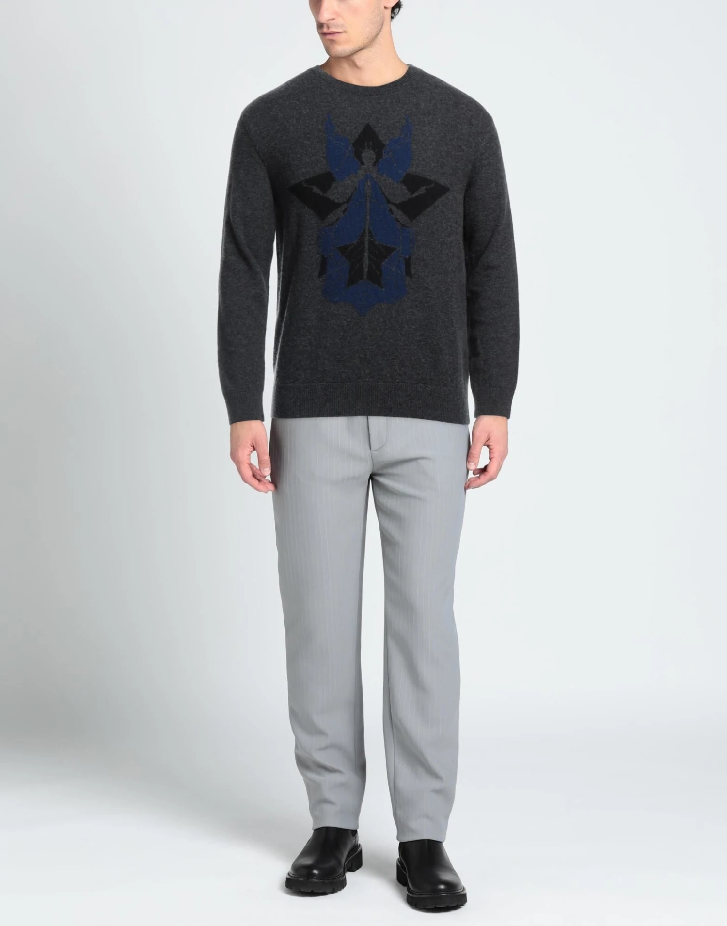 knitted, mélange, lightweight knit, no appliqués, multicolor pattern, round collar, long sleeves, no pockets, large sized